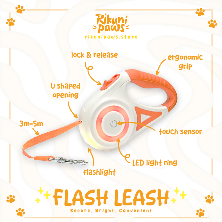 Make nighttime walks safer with the Flash Leash featuring a built-in LED spotlight to light your path, boost visibility, and help you navigate traffic, obstacles, and terrain with ease.